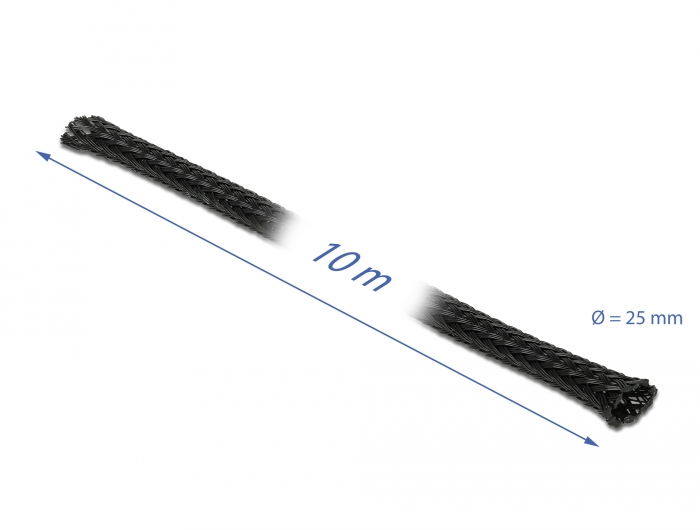 Geflechtschlauch dehnbar 10 m x 25 mm schwarz, Delock® [18904]