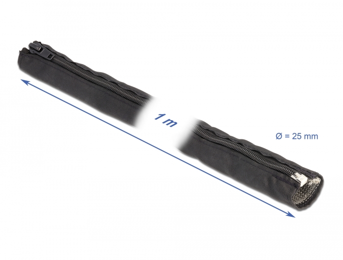 EMV Abschirmgeflechtschlauch mit Reißverschluss hitzebeständig 1 m x 16 mm schwarz, Delock® [20845]