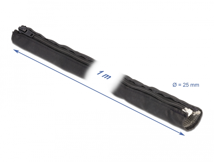 EMV Abschirmgeflechtschlauch mit Reißverschluss hitzebeständig 1 m x 25 mm schwarz, Delock® [20847]