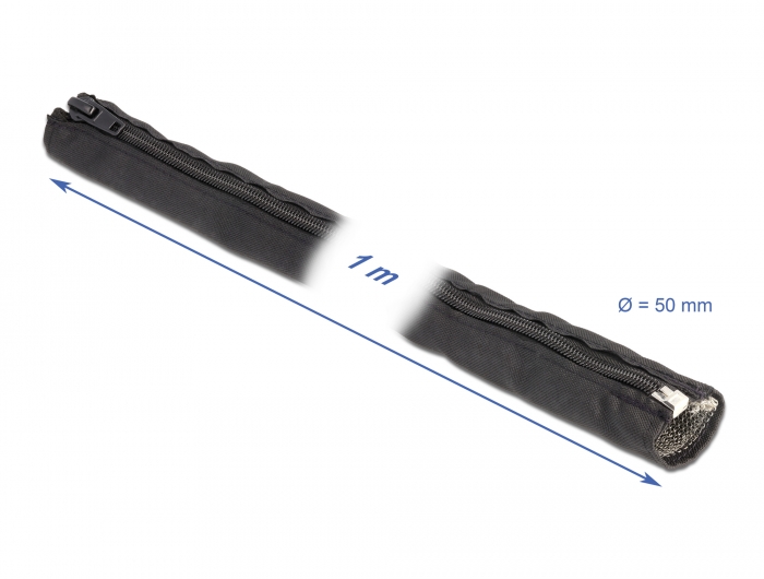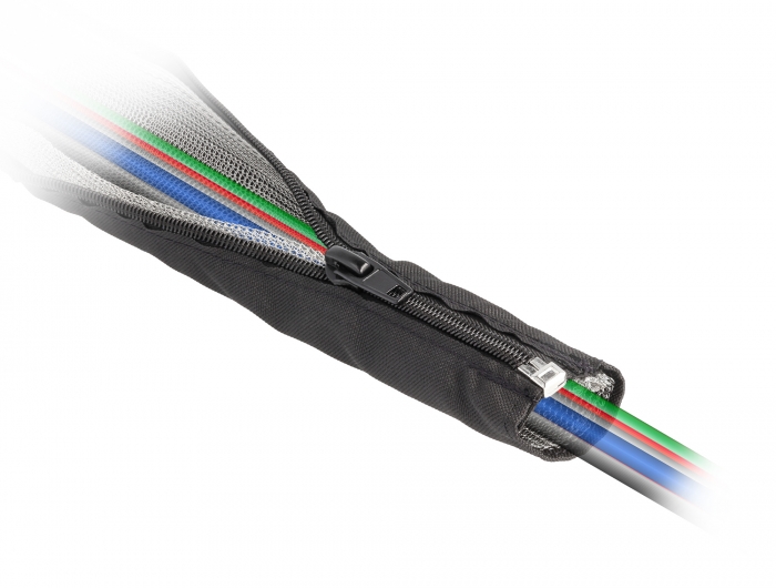 EMV Abschirmgeflechtschlauch mit Reißverschluss hitzebeständig 1 m x 50 mm schwarz, Delock® [20849]