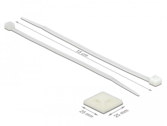 Befestigungssockel 25 x 25 mm mit Kabelbinder L 150 x B 3,6 mm weiß, Delock® [18677]