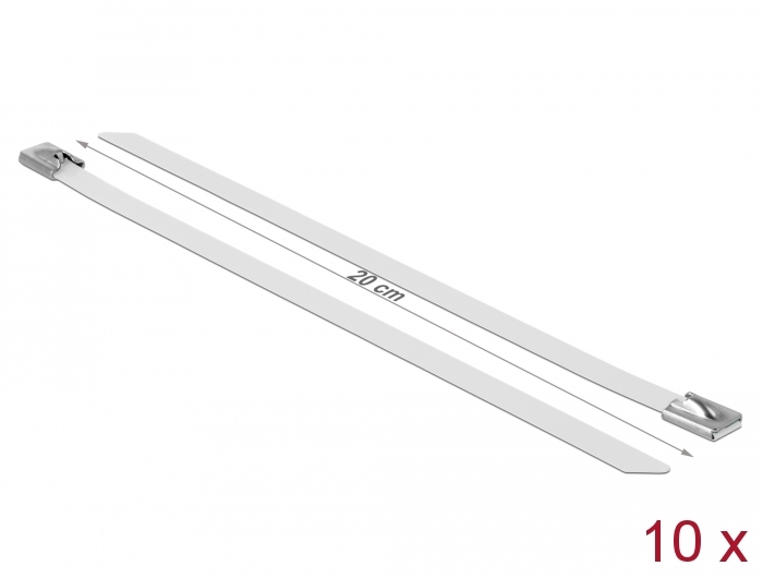 Edelstahlkabelbinder L 200 x B 7,9 mm weiß 10 Stück, Delock® [18821]