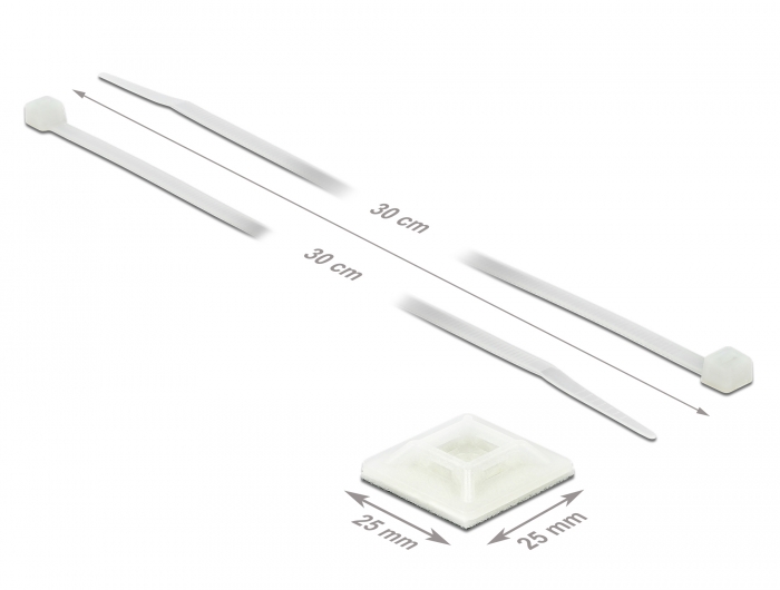 Befestigungssockel 25 x 25 mm mit Kabelbinder L 300 x B 4,8 mm weiß, Delock® [18834]