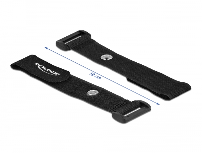 Klett-Kabelbinder mit Schlaufe und Befestigungsöse L 190 x B 25 mm schwarz 5 Stück, Delock® [19543]