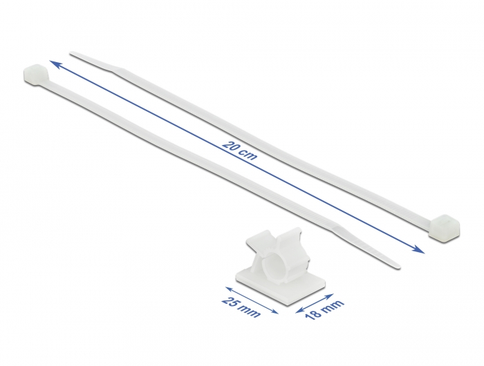 Kabelklemme 25 x 18 mm mit Kabelbinder L 200 x B 3,6 mm weiß, Delock® [18877]