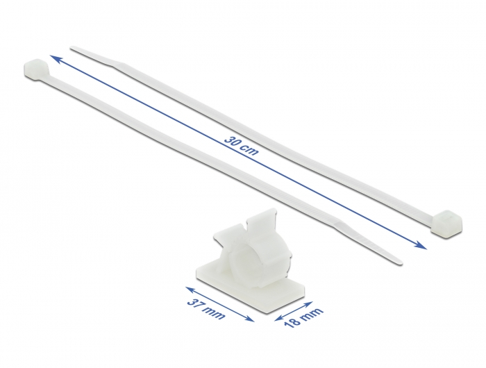 Kabelklemme 37 x 18 mm mit Kabelbinder L 300 x B 4,8 mm weiß, Delock® [18879]
