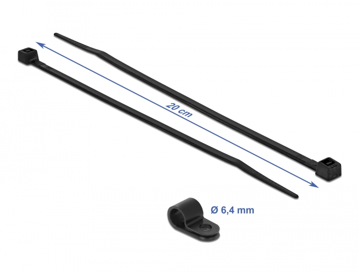 Befestigungsschelle 6,4 mm mit Kabelbinder L 200 x B 3,6 schwarz, Delock® [18864]