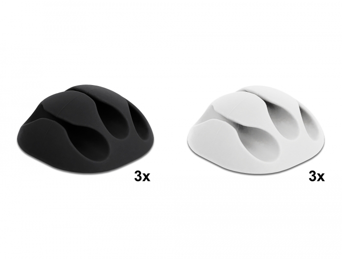 Kabelhalter mit 3 Durchführungen selbstklebend Set 6 Stück schwarz / weiß, Delock® [18346]