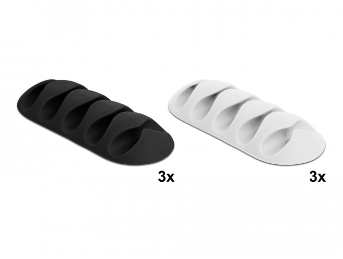 Kabelhalter mit 5 Durchführungen selbstklebend Set 6 Stück schwarz / weiß, Delock® [18347]
