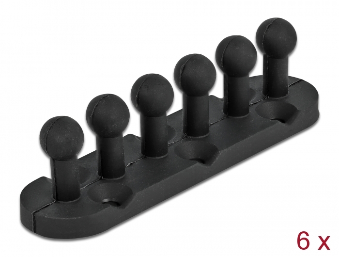 Kabelhalter mit 5 Durchführungen selbstklebend / schraubbar 6 Stück schwarz, Delock® [18332]