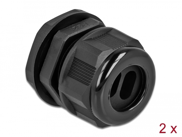 Kabelverschraubung PG21 für Flachkabel mit zwei Kabeleinführungen schwarz 2 Stück, Delock® [60393]