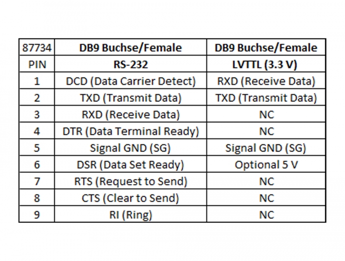 Konverter 1 x Seriell RS-232 DB9 Buchse zu 1 x Seriell LVTTL / LVCMOS 3,3 V DB9 Stecker mit ESD Schutz 3 kV und erweitertem Temperaturbereich, Delock®