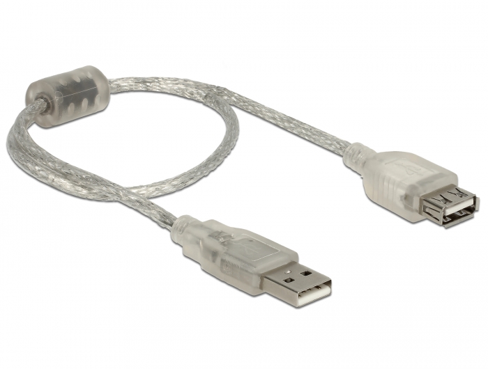 Delock Verlängerungskabel USB 2.0 Typ-A Stecker > USB 2.0 Typ-A Buchse 0,3 m transparent, Delock® [82244]