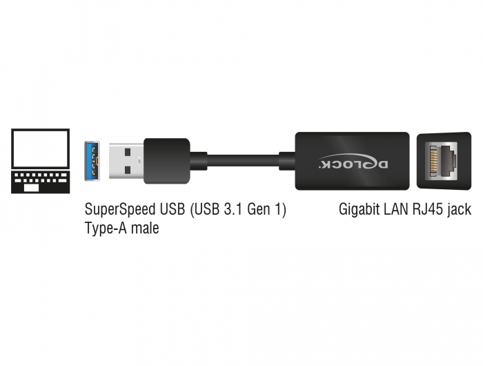 Adapter SuperSpeed USB (USB 3.1 Gen 1) mit USB Typ-A Stecker > Gigabit LAN 10/100/1000 Mbps kompakt schwarz, Delock® [65903]